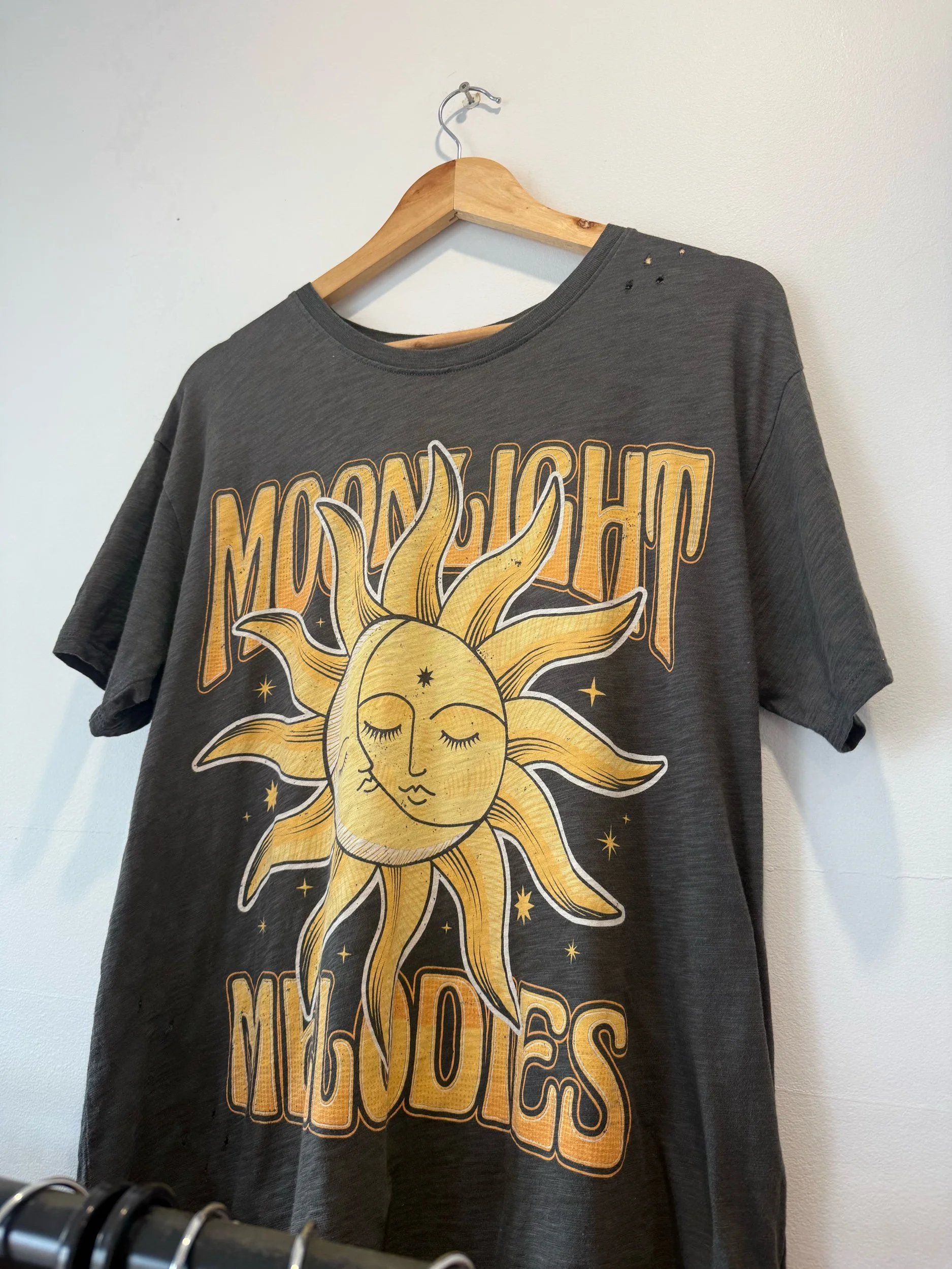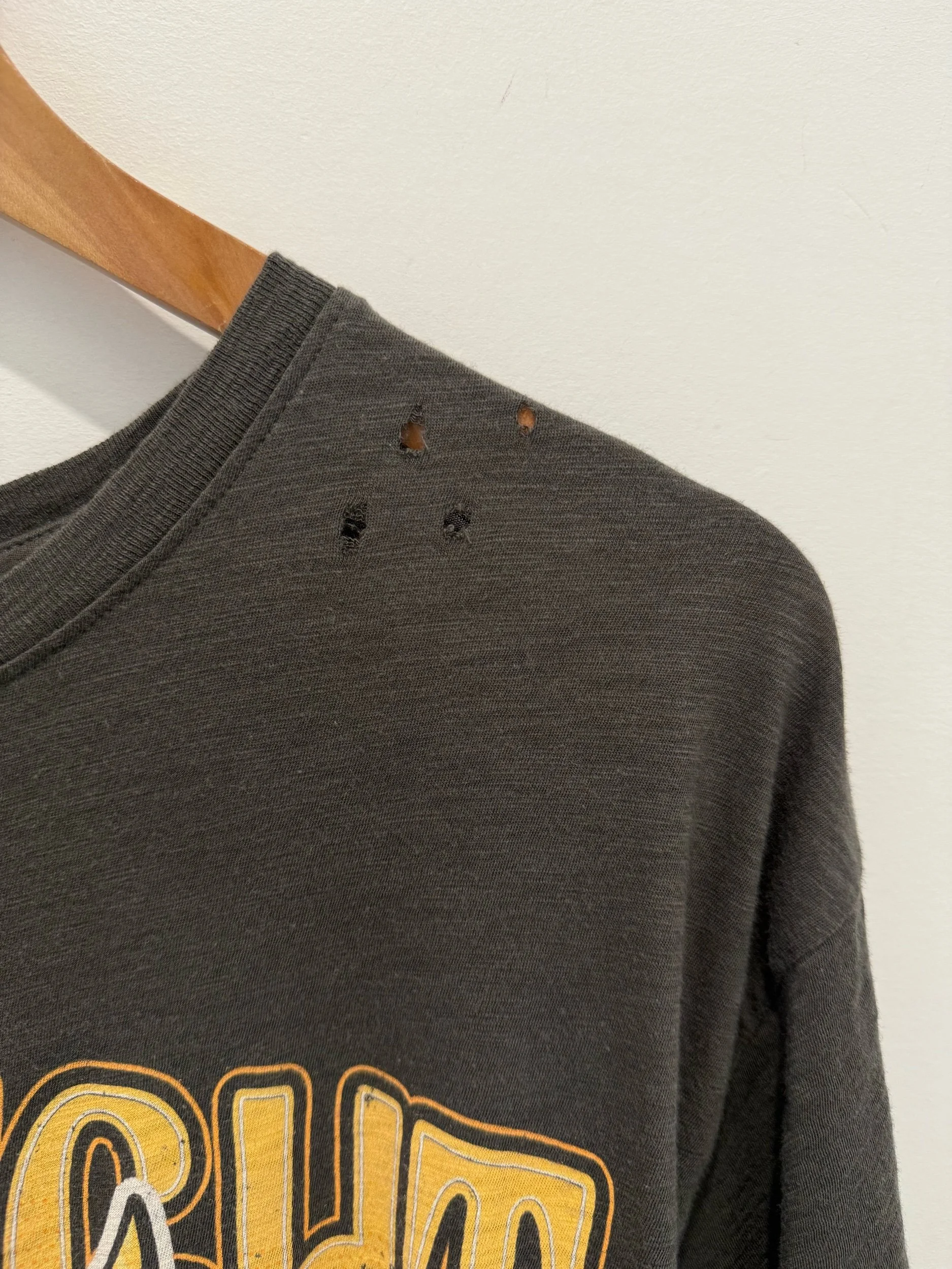 - Fabric is intentionally distressed
